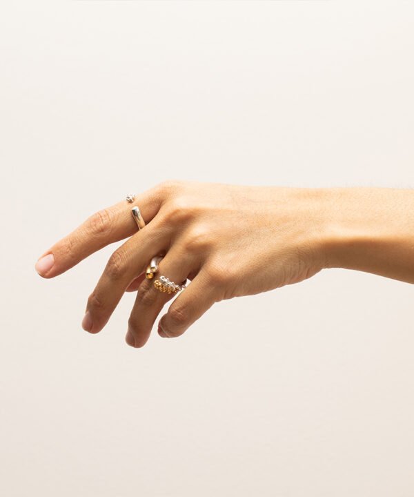Conoce tu talla para que tu anillo no se resbale y se deslice de tus dedos. Confirma la talla con nuestra tabla de tamaños. Aprenda más sobre tallas y cómo cuidar sus piezas y mantenerlas radiantes aquí.