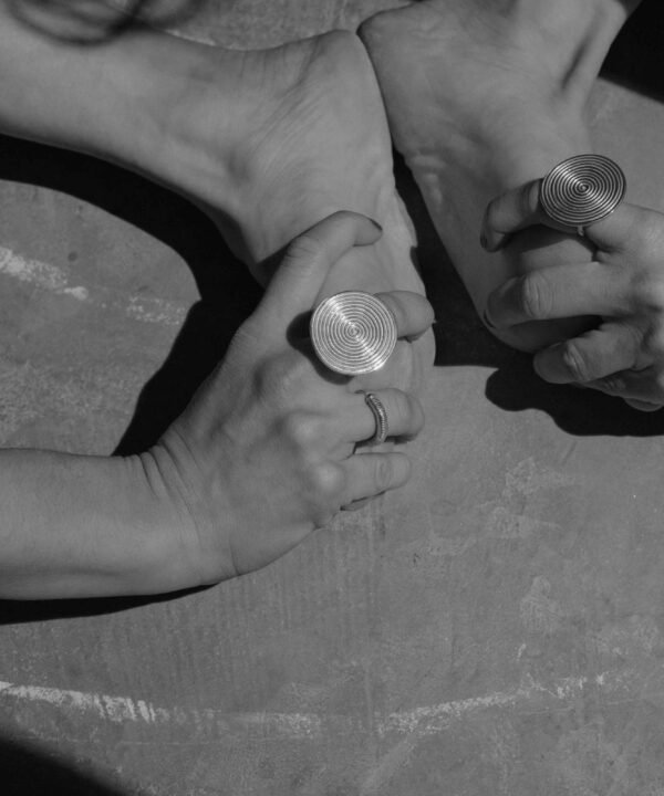 Un disco con una hipnótica macro espiral — una pieza imponente, un amuleto. Su nombre, Uzumaki, significa “espiral” en japonés, una forma que simboliza los ciclos, el fluir y el infinito. En este diseño, la espiral se convierte en un recordatorio de la transformación y del movimiento continuo de la vida.