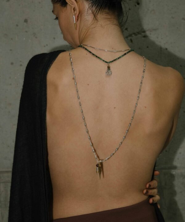 This lightning bolt pendant is radiant and evokes the infinite movement of the spiral. This design embodies power, vitality, and the continuous flow of transformation, making it an amulet of strength and light on your path.