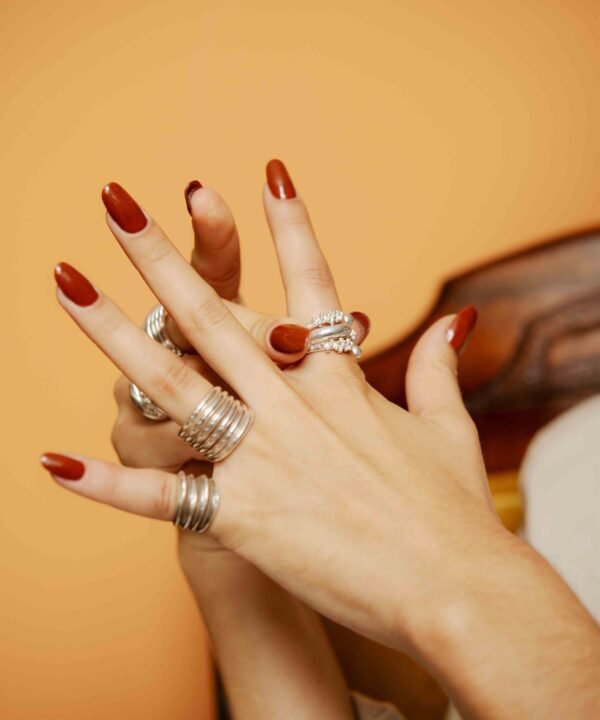 This ring is a striking piece featuring three iconic spheres. Its texture and design bring you strength and empowerment. Wear it as an amulet or statement piece that you can stack with other rings.